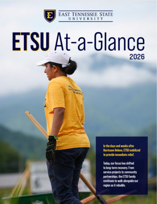 At-a-Glance weaves a mix of eye-catching graphics, photos, and interesting facts to spotlight some of the diverse contributions, accolades, and achievements that have occurred at East Tennessee State University each year.